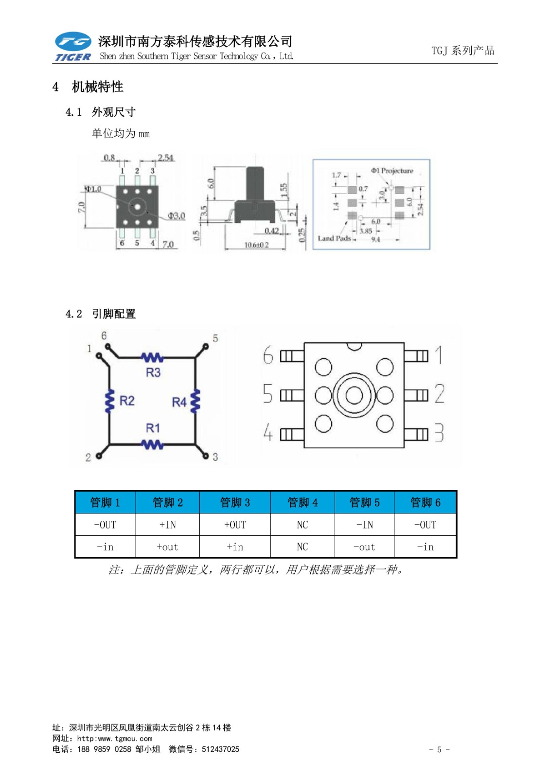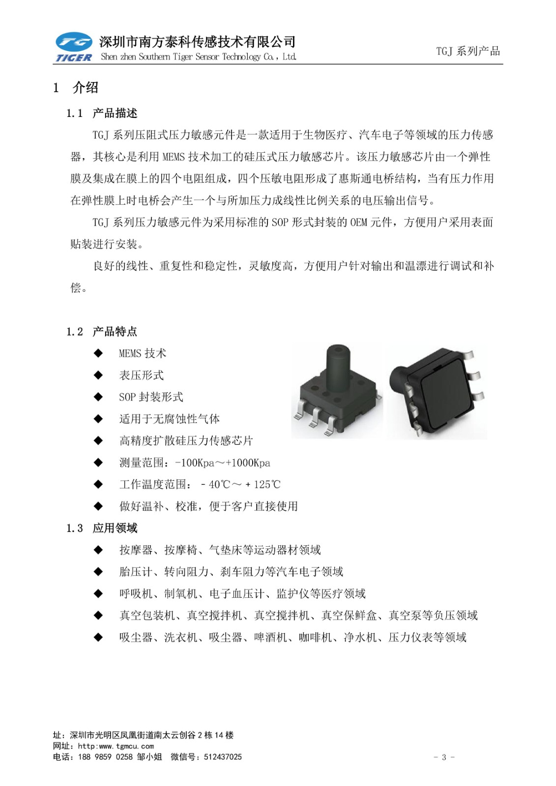 南方泰科医疗康复仪器按摩器件专用数字压力传感器TKJN040D